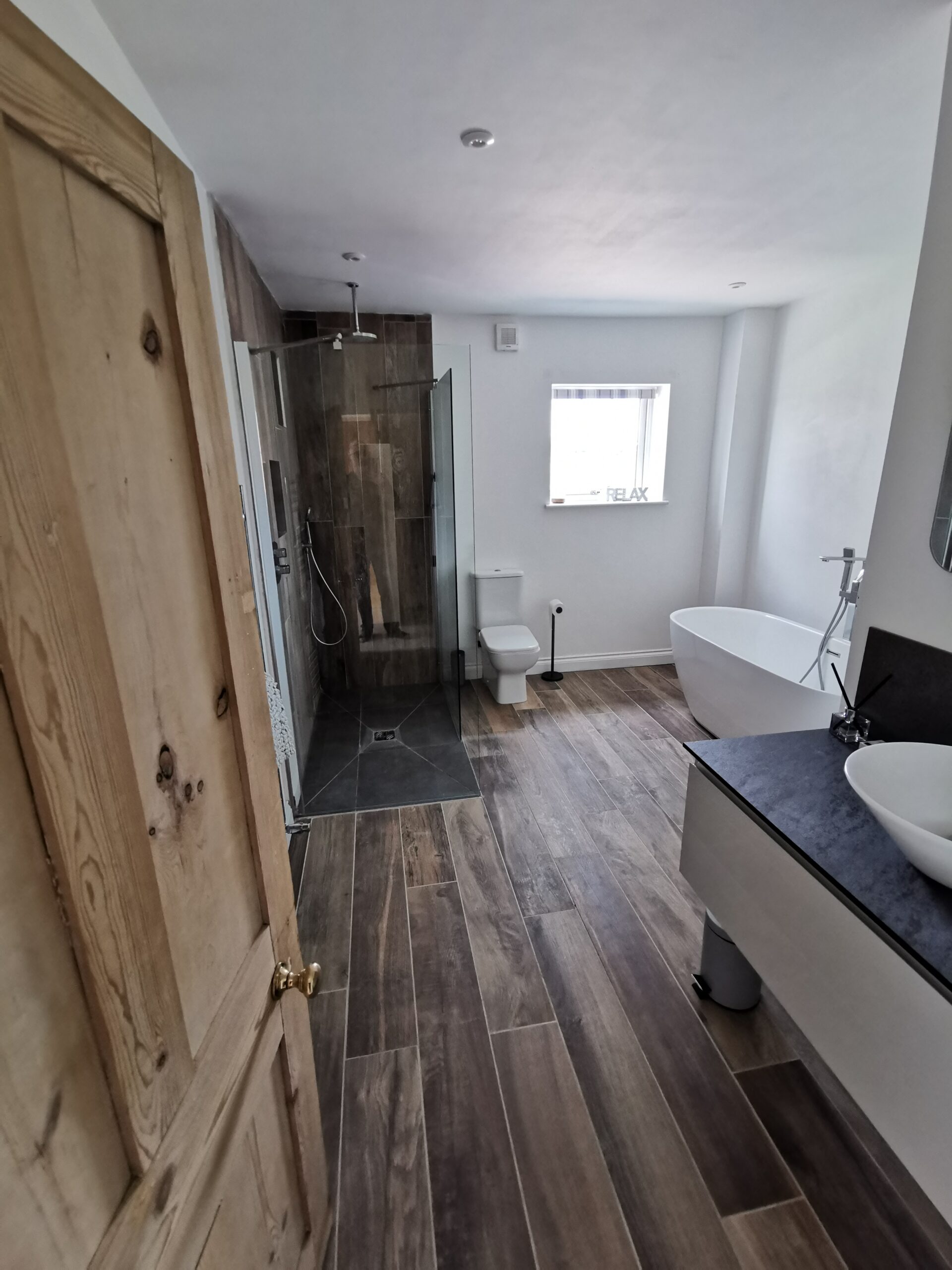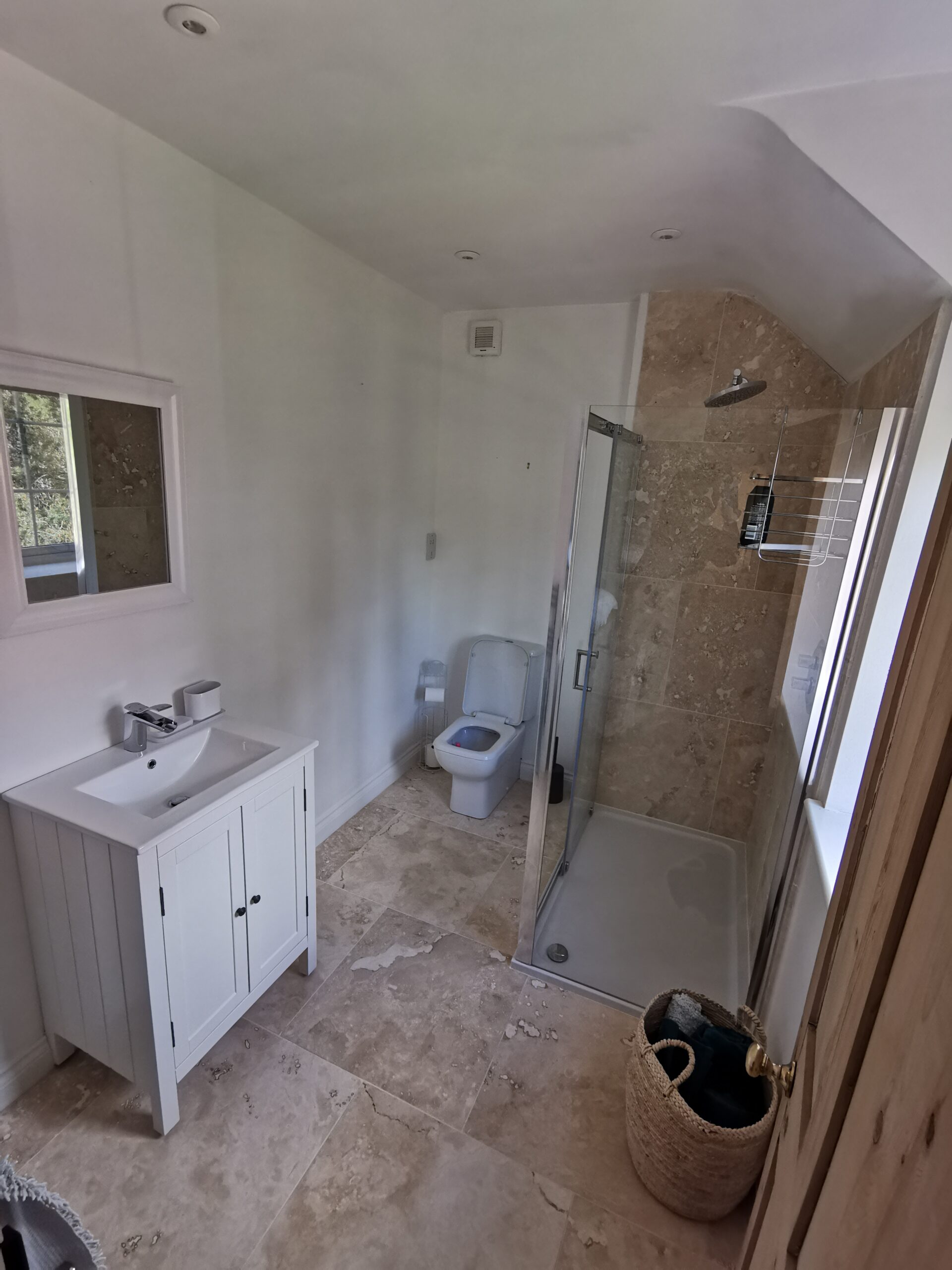 Well equipped beautiful open-plan kitchen diner and living room with log burner and patio doors. The kitchen has modern units with built in fridge freezer, cooker, oven, microwave and dishwasher.